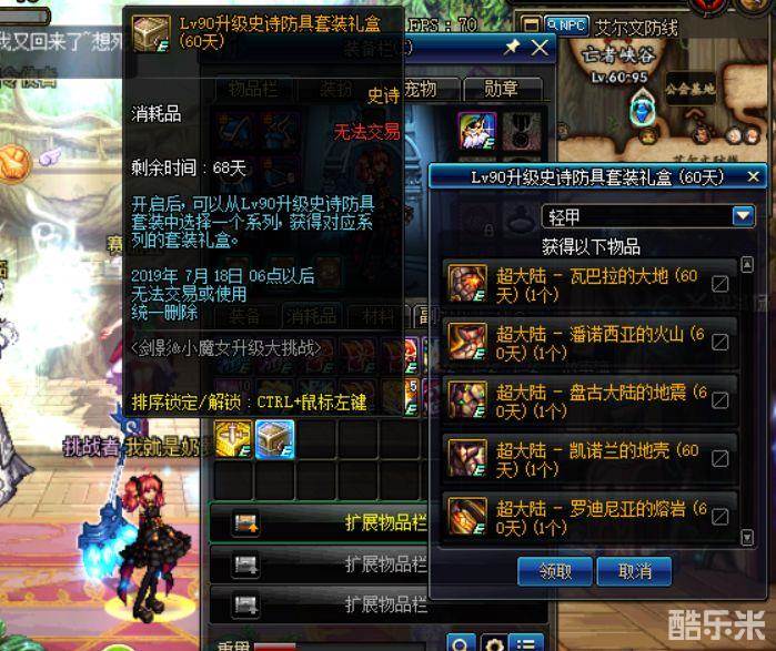 这个达成95级的礼盒里边的道具可以说是非常不错的,打开后可以获得+10/锻造3的哈林武器,重点是60天的90B防具,直接送5件,这个可以通过后续的任务升级为永久的防具!