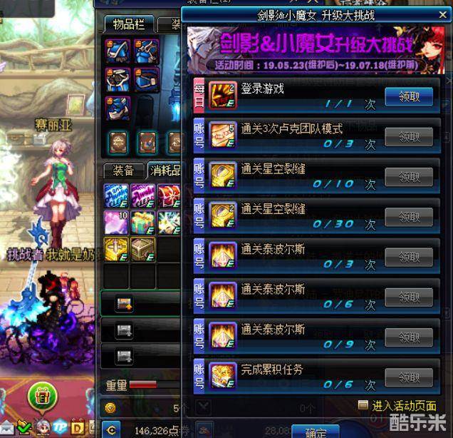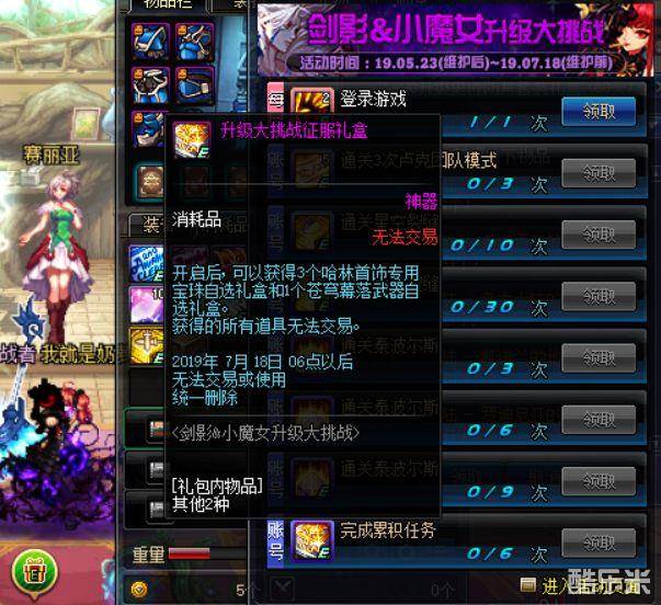 DNF剑影小魔女升级挑战 苍穹幕落武器免费送