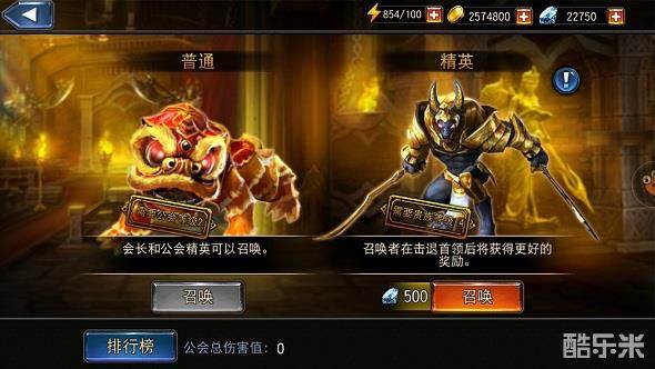 召唤成功后,公会中成员需消耗体力进入副本战斗,高级首领更有钻石奖励