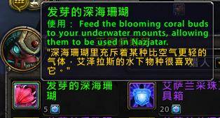 近日,8.2 PTR服务器纳沙塔尔区域NPC新添加了商品“发芽的深海珊瑚” - 使用该物品以后,允许你在纳沙塔尔陆地区域使用水下坐骑
