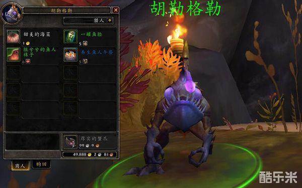 胡勒格勒:甜美的海菜(1金币购买)、一罐鱼脸(5个胀气鱼)、脏兮兮的鱼人袜子(6个未鉴定的物质)、养生鱼人午餐(5个奇特的鱼人之角)