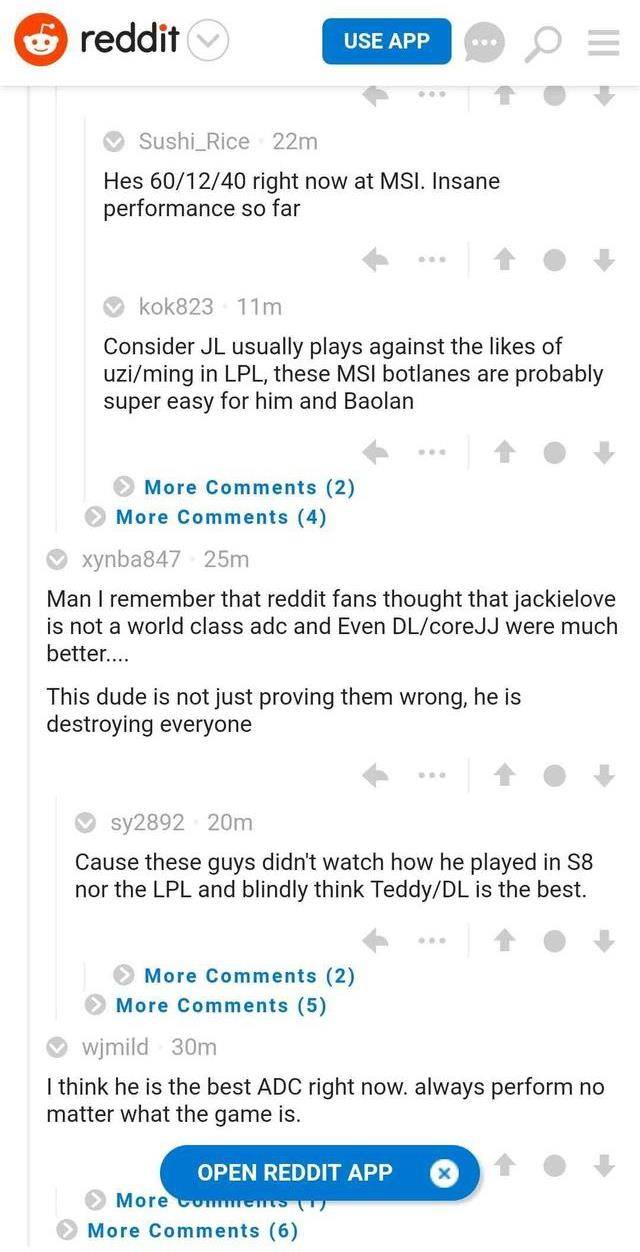 在海外的Reddits论坛,已经有不少网友表示:在这届MSI上,JKL是所有选手中表现最好的一位,并且他现在就是最强ADC,赛前一直有人说Teddy是世界第一ADC,但事实并不是。