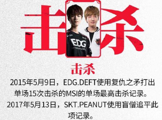 在队伍取得胜利的同时,这位爆炸输出的卡莎使用者JKL追平了MSI历史单场最高击杀纪录:2015年5月9日EDG.DEFT使用复仇之矛打出单场15击杀、2017年5月13日,SKT.PEANUT使用盲僧单场15击杀,这是让人自豪的成绩,时隔一年单场击杀最高记录者又多出一名。