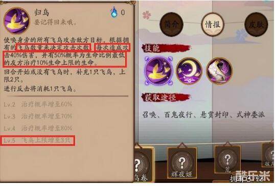 在不知火的结界中,一共可以释放两次普攻。而花鸟卷的一技能既是伤害技能也是加血技能。花鸟卷是根据自己身边有多少只飞鸟来决定她攻击的次数,同以津真天的鸟毛效果。最多上限是三只,造成伤害后,最高有80%的概率给血最少的友方式神治疗。当然是攻击多少次,就会治疗多少次。带针女御魂的话,触发的针女伤害不能进行治疗。
