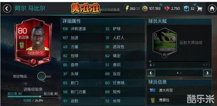 右边锋 马比尔,可能对于他大家都不是非常了解,它是一个银卡右边锋的妖人(下面有图)双速比扎尔德斯还猛,盘带惊人,价格很便宜,在没有v贝尔的时候可以用来过度。