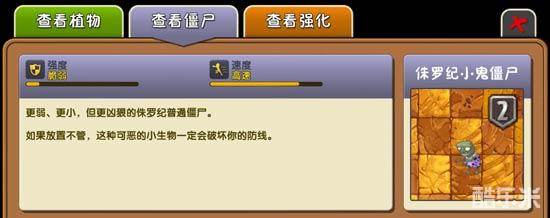 植物大战僵尸2恐龙危机中的侏罗纪小鬼僵尸怎么样?想必还有很多玩家不知道,那么侏罗纪小鬼僵尸有什么样的技能?怎么对付他呢?下面我们一起来看看侏罗纪小鬼僵尸的僵尸图鉴吧~