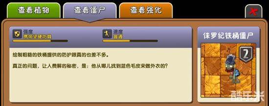 植物大战僵尸2恐龙危机中的侏罗纪铁桶僵尸怎么样?想必还有很多玩家不知道,那么侏罗纪铁桶僵尸有什么样的技能?怎么对付他呢?下面我们一起来看看侏罗纪铁桶僵尸的僵尸图鉴吧~