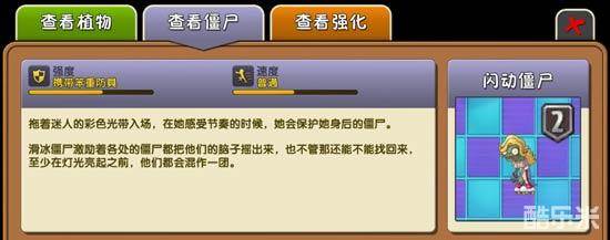 植物大战僵尸2摇滚年代中的闪动僵尸怎么样?想必还有很多玩家不知道,那么闪动僵尸有什么样的技能?怎么对付他呢?下面我们一起来看看闪动僵尸的僵尸图鉴吧~