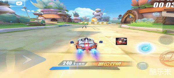 最后一处捷径位于终点前,通过U型弯道时使用快速出弯调整车头,在透明高台落下时使用氮气,并踩中下方加速带,期间衔接空喷、落地喷进一步提速。然后控制车头向左侧行驶,在土墩处跃起,配合空喷,落地喷形成氮气延续,最后再次使用氮气提速冲向终点。