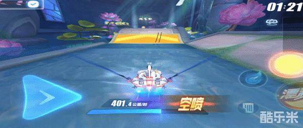 飞跃点后进入荷塘赛道,在落地时使用氮气并叠加空喷与落地喷组成CWW喷提速,前方有上下岔路段,两条道路时间差不多,建议选择走不容易失误的右侧主道路。使用空喷与落地喷形成多次氮气延续,落地后迅速使用甩尾漂移衔接CWW喷集气并提速通过室内赛道。