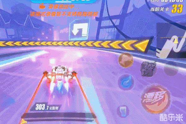 来到第33关的浮桥路段。此处需要预留两个氮气才可以完美通过,否则会出现缺少氮气平跑飞跃的尴尬局面,因此在这里依然推荐大家使用飞机道具通过。需要注意的是车手们应该在即将离开跳台的时候使用飞机道具,这样才能使飞机的持续时间足够通过后续的飞跃。