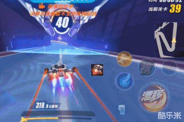 最后来到第40关的假弯路段。由于假弯路段前的小捷径入弯角度难以把握,强行进入会耽误较多时间,因此推荐在弯道口前使用飞机道具通过该路段。值得一提的是,这里的飞机可以提前使用,因为飞机并不会在弯道停下来,因此可以大幅提高飞行距离。