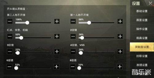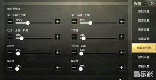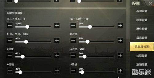 陀螺仪的灵敏度其实也是十分重要的,第三人称和第一人称不开镜分别为100%和95%,基础镜和2倍镜分别为90%和75%,3倍镜和4倍镜分别为62%和50%,6倍镜和8倍镜分别为42%和30%。