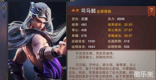 仅次于赵云的远程攻击成长属性,116%的初始技能伤害,外带驱散对方增益效果。神器觉醒后15%伤害加成,并且给对方35%伤害加深debuff。可以说司马懿绝对是一个非常能打还能恶心人的存在。尤其是在PVP面对对方有华佗和刘备这样治疗和生命链接均摊伤害以及曹仁的伤害吸收护盾的恶心阵容的时候,司马懿一个群体驱散全消掉,才是最让对方恶心的事情。在PVP中作用远远大于赵云的存在。但是在PVE过关中,小编更倾向于选择赵云。