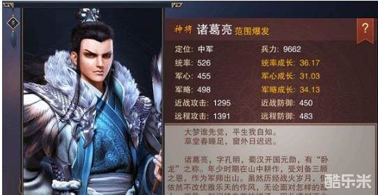 说实话,这个版本的诸葛亮定位有点模糊。技能41%*3=123%的远程伤害,外带加成自身24%闪避持续8秒。神器激活后受伤时5%几率释放闪电对伤害来源150%远程伤害,外加技能释放后增加30%自身伤害和免伤,持续8秒。怎么看都像是想把诸葛亮设计成一个远程坦克的意思。但问题是诸葛亮的统帅和统帅成长并不算是优秀,在后面高伤的关卡当中,血量并不足以抗住足够的伤害,还是容易被秒的存在,所以定位有些尴尬。如果闪避改成对全队有效,则是一个非常优秀的伤害输出外加辅助神将了。不知道后续是否会有一定调整。