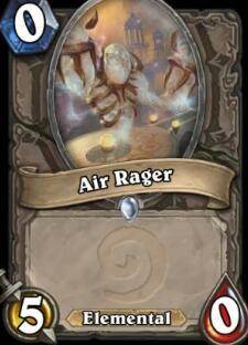 普通品质中立随从,零费5/0身材,元素属性。空气暴怒者具备暴怒者家族低费,高攻的特色,唯一的区别就是这是一张0血量的卡牌,这意味着直接出手的话会当场暴毙。总的来说,其对于具备大量BUFF牌的铺场流卡组来说食之无味;对于依赖连击的盗贼来说,又是最差劲的选择,还不如小精灵稳定。所以能够有所作为的地方确实比较难找到。