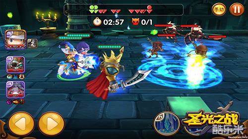 与之不同的是,《圣光之战》的英雄是以卡牌的形式存在,玩家可以通过收集英雄魂石来召唤英雄,然后慢慢培养强大。出征时可以派遣三位英雄,英雄可以配带士兵,战斗以即时横版进行。每个英雄技能都各具特点,玩家能随时切换英雄施放技能,以此来达成各种Combo,具有很强的操作性。