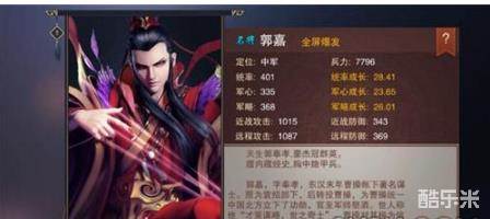 郭嘉作为曹操的重要谋士之一,在官渡之战中起着重要的作用。在郭嘉死后,还有着遗迹定辽东的壮举,被曹操所深切哀悼与怀念。郭嘉作为这五位大将中最容易得到的一位,在玩家群体中非常受欢迎,作为招贤馆中的常客,郭嘉的获得几率非常之高。超高的法术输出能力,搭配全体控制,使得郭嘉兼顾伤害与防御,并且还能削弱敌方的远程防御,在搭配以法师射手为主的阵容时,能够起到奇效.