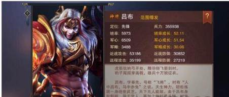 说起三国第一勇将,公认的便是吕布吕奉先,民间素有“人中吕布,马中赤兔”的美谈。在游戏中,吕布和赵云一样,同样作为游戏中发展潜力最大的武将,相对于赵云的暴力输出,吕布的定位则更加全面,可以说是攻防一体。核心技能天下无双能够对周围所有敌方打击3次。造成56%的近战伤害,并且还能提高200%的攻速与移速。在打出瞬间的高额爆发之后,吕布还能继续持续输出,对敌方来说,便是噩梦一般的恐怖武将...