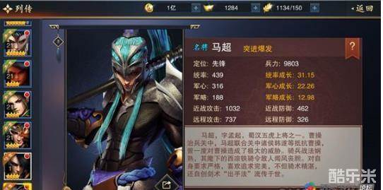 既然是突进爆发,所以马超的近战攻击和兵力都是比较高的,军略方面略有不足,总之喜欢玩输出攻击类型的玩家可以选择马超作为先锋。