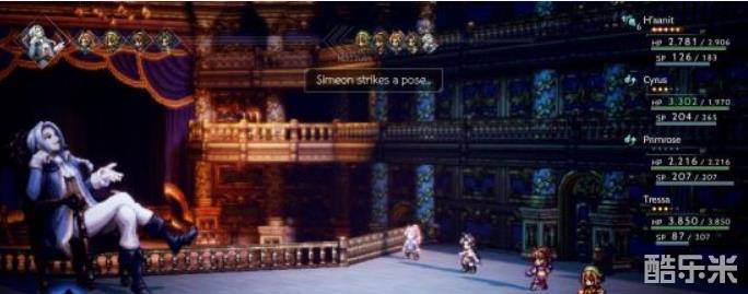 后期出现提示“啊...让我们一起起舞吧”“影子包围了Simeon”下回合第一次行动固定为 Serenade to the Darkness,对我方全体造成暗属性元素伤害(约1000)