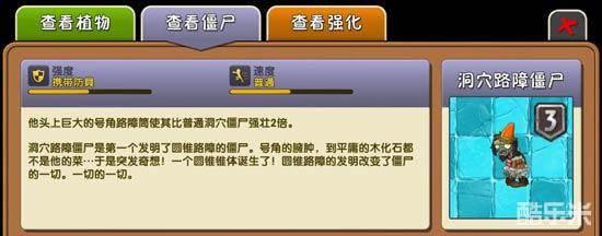 植物大战僵尸2冰河世界中的洞穴路障僵尸怎么样?想必还有很多玩家不知道,那么洞穴路障僵尸有什么样的技能?怎么对付他呢?下面我们一起来看看洞穴路障僵尸的僵尸图鉴吧~