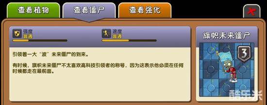 植物大战僵尸2未来世界中的旗帜未来僵尸怎么样?想必还有很多玩家不知道,那么旗帜未来僵尸有什么样的技能?怎么对付他呢?下面我们一起来看看旗帜未来僵尸的僵尸图鉴吧~