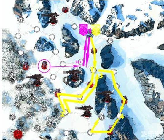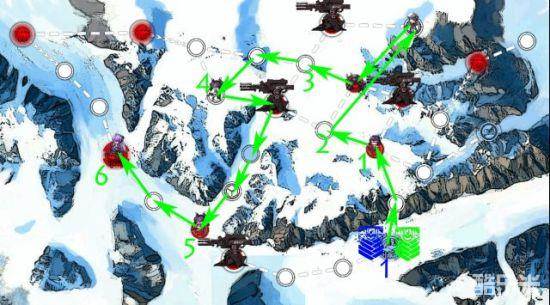 4、有空降的可以第一回合飞黑点(指挥部右边的机场),家里放一个低配ar队。第二回合空降队走到计量官左边。可以在机场放个狗粮队。第三回合debuff消失,空降队一路通到敌方指挥部。