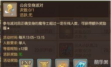 当魔导士等级达到12级且加入公会后。在每日13.05分来到公会领地即可参与公会变身派对活动。