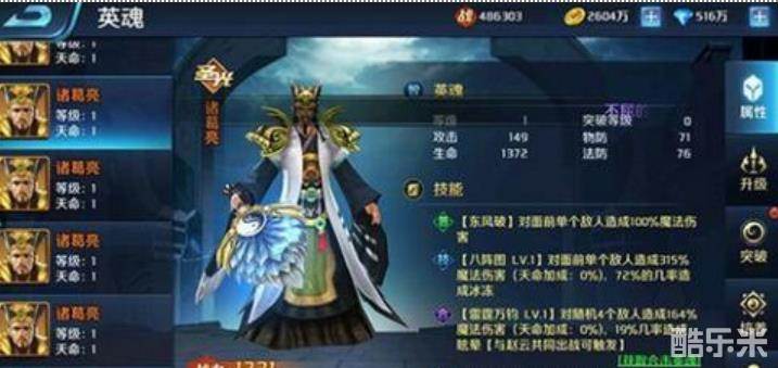 从天赋上看,诸葛亮的天赋主要还是在增加攻击、生命比较多,与赵云的合体技是非常有效的清场手段。