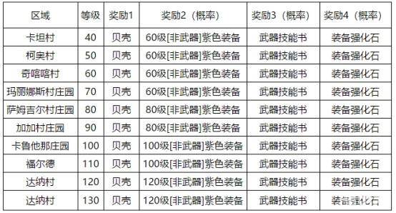 玩家每天参与猛兽袭村的活动中,除了获得经验、贝壳等奖励以外;同时有概率掉落较为稀有的高品质装备(可交易),具体如下: