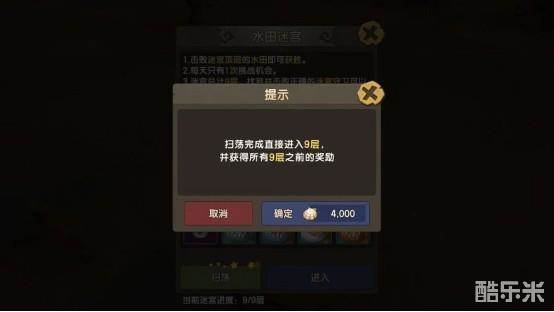 当玩家通关水田迷宫第一层的时候,开启扫荡功能,具体说明如下: