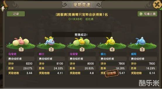 每次竞猜只能对其中一只宠物进行押注。