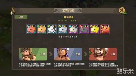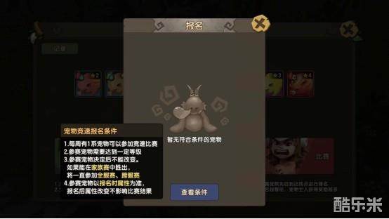 ①玩家在报名参加宠物竞赛,需要拥有该系别的宠物,且满足报名的等级要求;