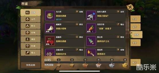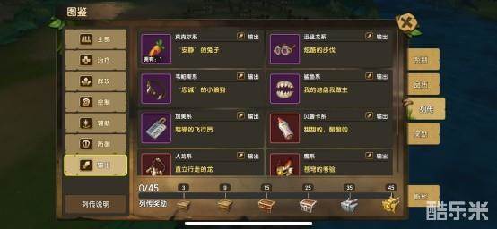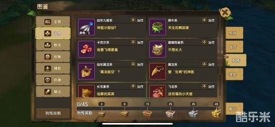 45系列传宝箱:完成45系宠物列传可领取,贝壳*12000、宠物改造石*120、宠物币*3000、随机宠物果实*20