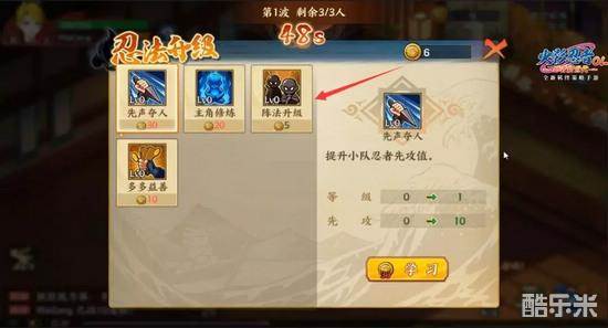 技能有四种,先声夺人可以提升先攻,主角修炼可以提升主角星级,阵法升级可以提升上阵人数上限,多多益善则用来提升每一局对战积分奖励。在召集忍者之余,适时的去提升技能也是获胜的关键!