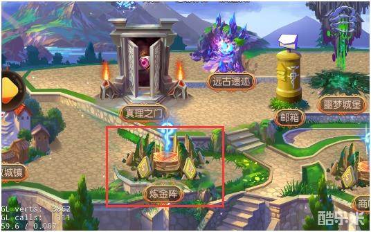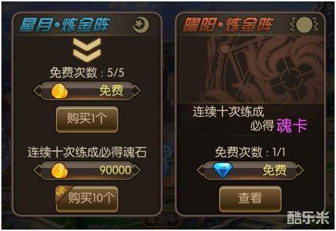 主基地中闪光的召唤阵,就是炼金阵的入口了。炼金阵分为2种: 。每种炼金阵都可以免费抽取宝贝,亦或使用金币和钻石抽取。
