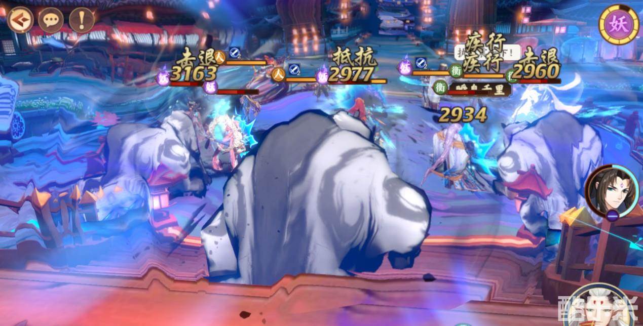 随后在攻击提升状态下的牛魔獓因释放AOE对敌方全体造成巨量伤害,同时对敌人造成击退效果,使敌人的行动更加缓慢。