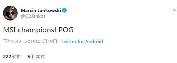 伴随着G2捧起MSI冠军奖杯,本届MSI也落下了帷幕。G2战队全员也在推特上庆祝他们的胜利。