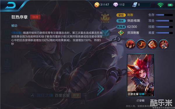 被动技能——狂热序章:精通狩猎技巧使得玄策专注普通攻击时,第三击重击造成暴击伤害,(该效果会因为技能释放和链子断裂而重新计数)玄策狩猎英雄或助攻都会激发心中的狂血使得移速和攻速大幅度提升(随时间效果衰减)。