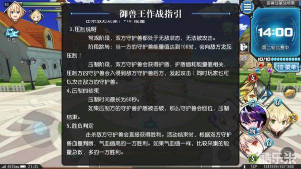 说是御兽,其实特殊的5V5 pvp。只不过这个PVP和亚瑟选拔战不同,获胜条件不是将玩家全部击杀,而是击杀敌对公会守护兽。