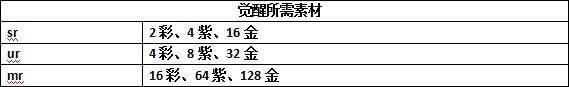 注意:觉醒素材主要有金色、紫色、彩色三种,和升星素材不同的是,彩色觉醒素材有属性差别。