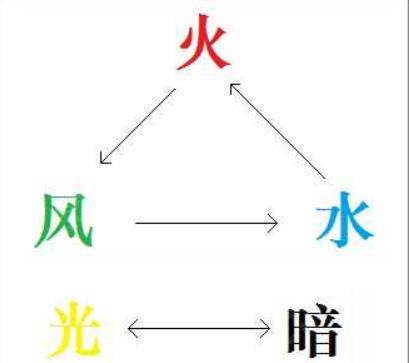 还有一些不同的是,叛逆的目标不但有物理/魔法防御,闪避,暴击抵抗这些属性外,还有“属性”这种卡牌游戏内常见的东西,克制如下: