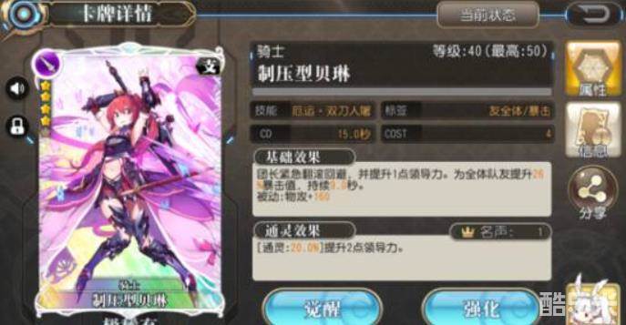 极稀有效果是:冲锋造成X属性315%伤害,周围每个带有团长增益的队友,使本次伤害提升9%的伤害,消耗1点领导力本次攻击提升42%(这个倍率很厉害了,315+45+42=402。4倍伤害!)
