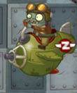 特性: 战斗机僵尸出场后,会选择一条道推进,遇到植物就攻击植物,没有植物就攻击“戴夫号”舰体,当靠近甲板后,会拉杆垂直升空,然后回到僵尸出场底线,换行再来一次,直到被摧毁。