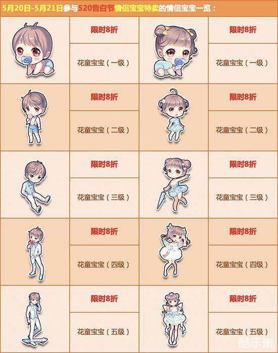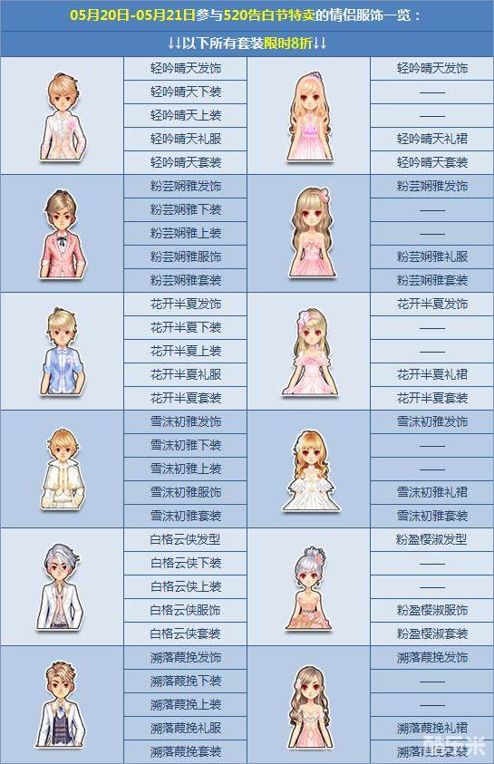 5月20日-5月21日期间,520告白节特卖会登场,【轻吟晴天套装】等六套情侣服饰8折上架,还有花童宝宝暖心登场,更有各式告白道具贴心来袭,5月告白季,精彩不停歇!