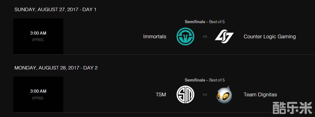即将于8月27日3时迎来NA-LCS夏季赛半决赛,对战四强为: