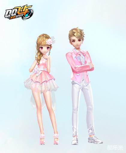 樱花盛放的春天当然应该打扮得粉粉嫩嫩的,这套粉樱若雅套装就正好应景。女生精致的发型搭配一条粉色小短裙,裙边的轻纱随风摇曳,可爱迷人。男装则是一套修身的粉色西装,英俊挺拔,显得元气满满。