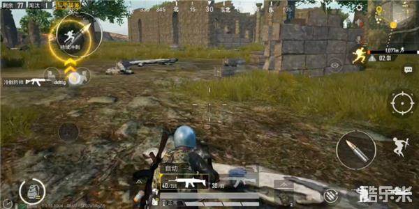 从A区域出来以后我们就沿着B区域的下边开始绕,清理掉废墟内的其他玩家。废墟的地势非常的复杂,在不能保证山顶清完之前尽量不要深入废墟,不然很容易腹背受敌被别人绕。所以推荐大家从下边沿着边开始绕,废墟边缘也是可以刷新很多物资的,在清点的同时我们可以继续丰富我们的装备。