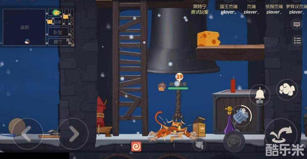 雪夜古堡地图取材自《猫和老鼠》动画中,得到了完美复刻,堆积的雪花,寂静的深夜,幽深的古堡,更复杂的房间结构和更多的地面陷阱会给玩家带来不小的挑战。